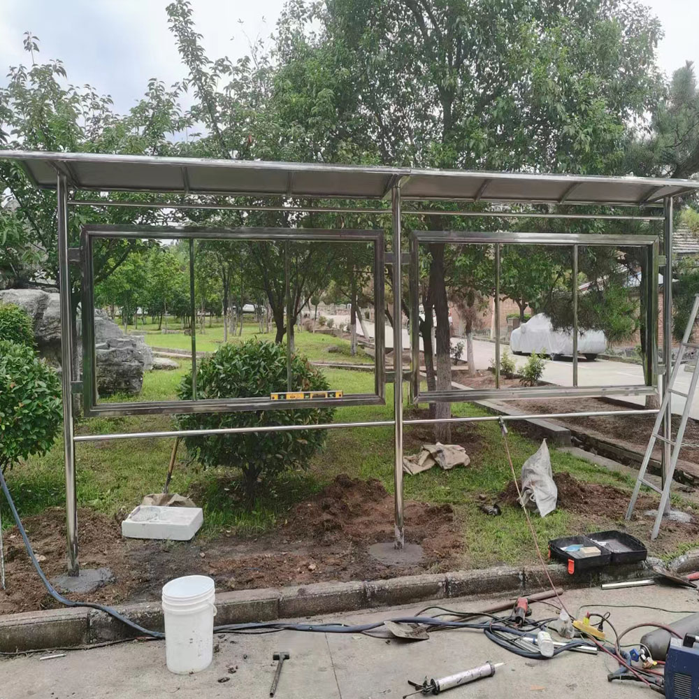 工地不锈钢宣传栏带雨棚,预埋件