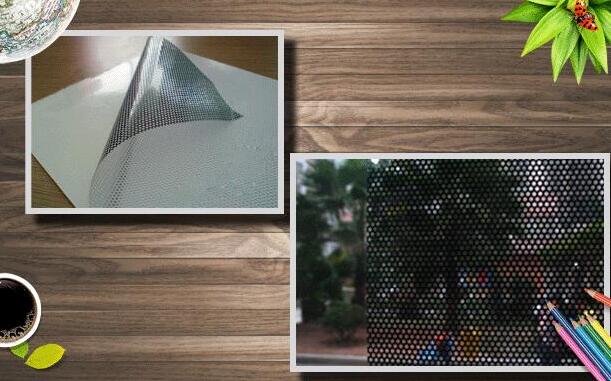1、遮阳打孔单面透(小孔) 透视率约30%,透视效果较差,但广告画面较为清晰,附着墨点较多,适合于在透视效果要求不高的玻璃面上张贴,如:橱窗、大厦外墙玻璃、会议中心大厅玻璃、机场的候车室、加油站等处张贴。