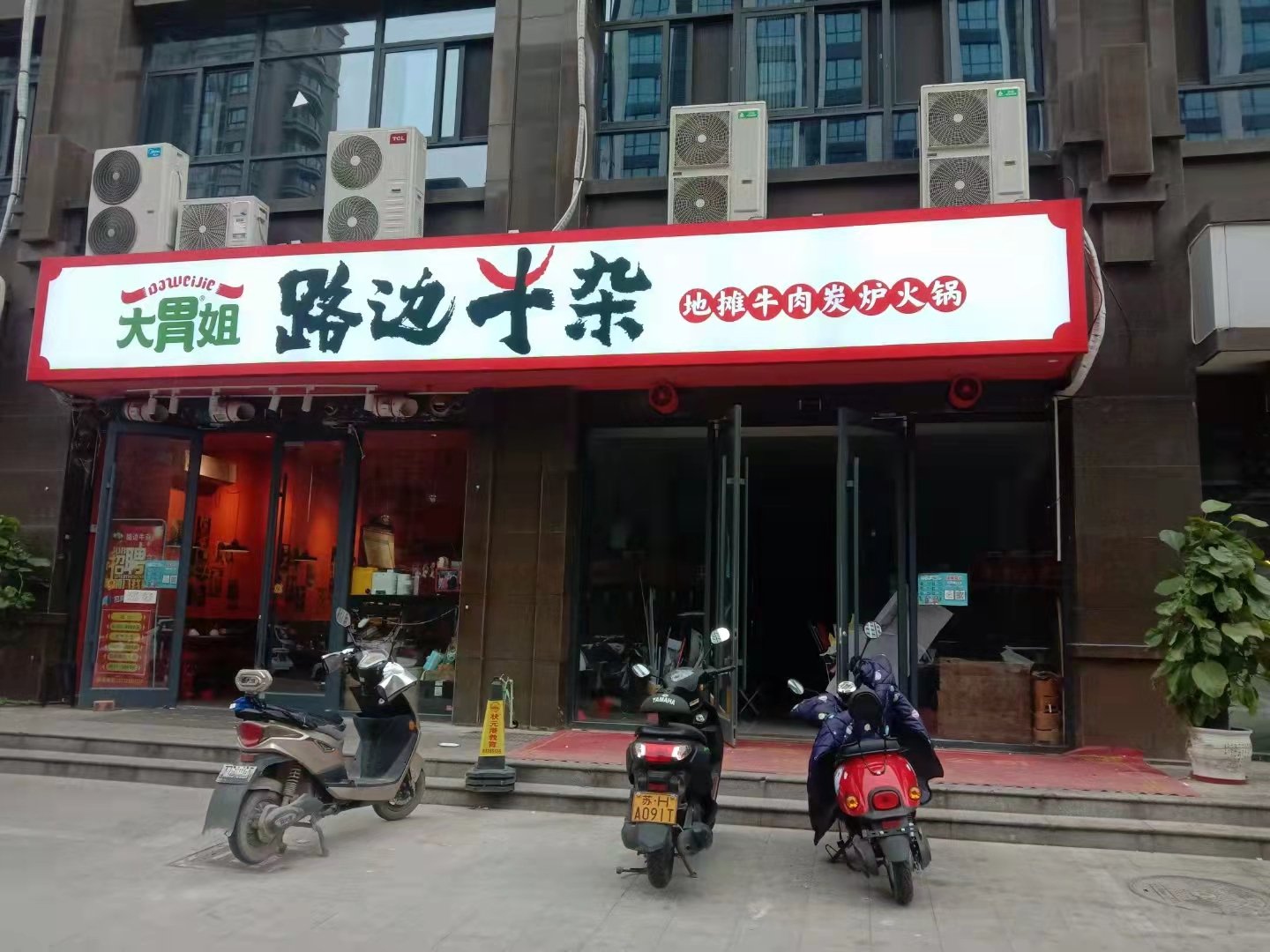 徐州大胃姐路边半杂牛肉炭火火锅门头制作,软膜灯箱广告牌,门头采用整体钢架结构3+5方管,底部防水,顶部防水