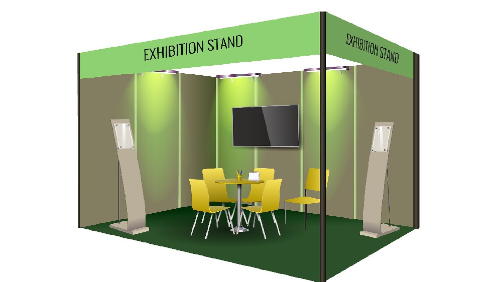 其实,标摊也可以做特殊的安装效果,充分利用现有的资源和智慧,比如效果图中的标摊设计组装KT板图片,搭配漂亮的方柱展示柜,适当增加一两盏灯,一个标准的特殊安装展台就出来了。特殊安装较小标摊设计中应注意以下几点: