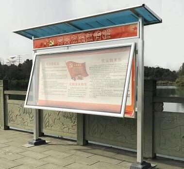 大型宣传栏的高度一般在两米二以上,可带顶棚,也可不带顶棚,不带顶棚的可以稍矮一些。顶棚材质多为阳光板,也可是玻璃,或不锈钢板。其宽度一般在两米五左右,也有竖版的公告栏,宽度在一米左右。制定宣传栏的宽度时应考虑公告栏内部放置内容的尺寸,宽度一般最好是海报宽度的整数倍,再加十几公分,这样能够更有效的利用宣传栏的宣传空间。