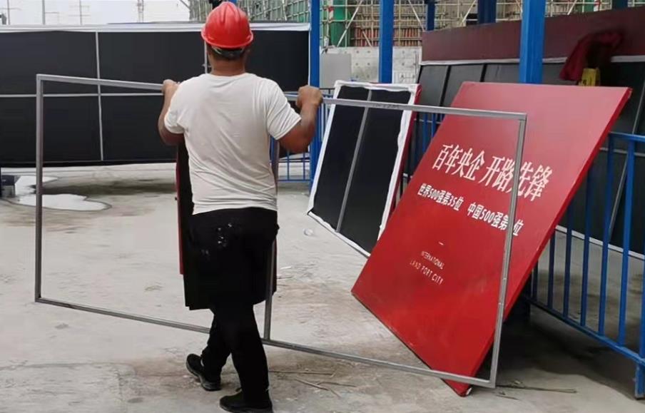 徐州某房企工地围挡广告牌制作,主要材质喷绘,黑底喷绘布,方管架子