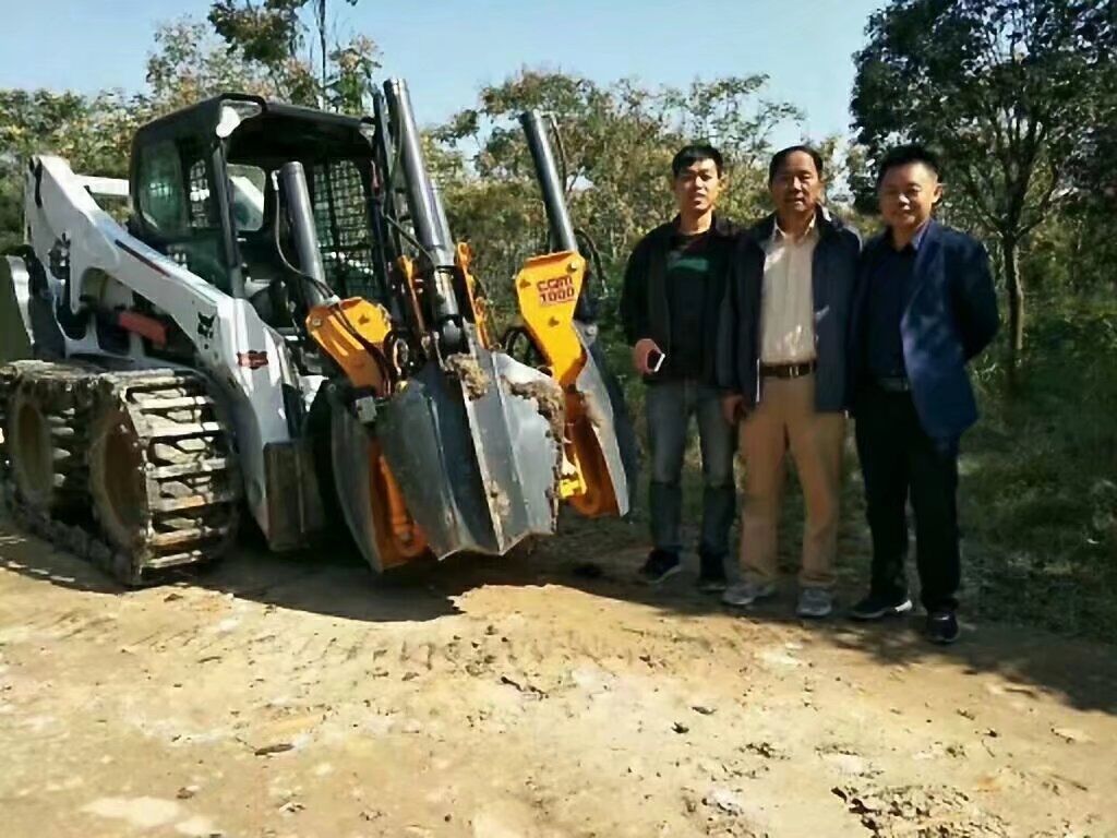 CQM600A萝卜球挖树机,适用于原生树,苗圃移栽断根使用 CQM600A挖树机搭载柳工908挖掘机入驻安徽淼林园林公司,技术人员与园林挖机师傅合影。