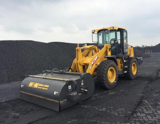 前进型清扫器是一种经济的集料清扫设备,使物料的清扫、收集变得更为简单高效,液压驱动的清扫器可以安装在装载机、滑移装载机等机器上。能用于众多场合,可以清扫道路、料场、停车场、码头、仓库、港口等。前进方式清扫作业,操作安全、作业效率高、大大提高了作业的安全性,降低了操作的劳动强度,消除了后退作业方式对操作者的身体危害。前集料斗设有新型浮动式集料板,集料板可随地形浮动,大大提高了不平整场地的清扫效果,集料板采用螺栓和铰轴连接,便于更换。清扫器斗底采用液压控制,可翻转卸料,大大提高了作业效率。毛刷高度可无级调节,调节方便快捷,调节处设计有刻度的钢板尺,调节毛刷时更加准确,并能极大的提高毛刷的使用寿命。毛刷和马达安装采用快速更换系统,更换毛刷、马达方便快捷,大大提高了工作效率。